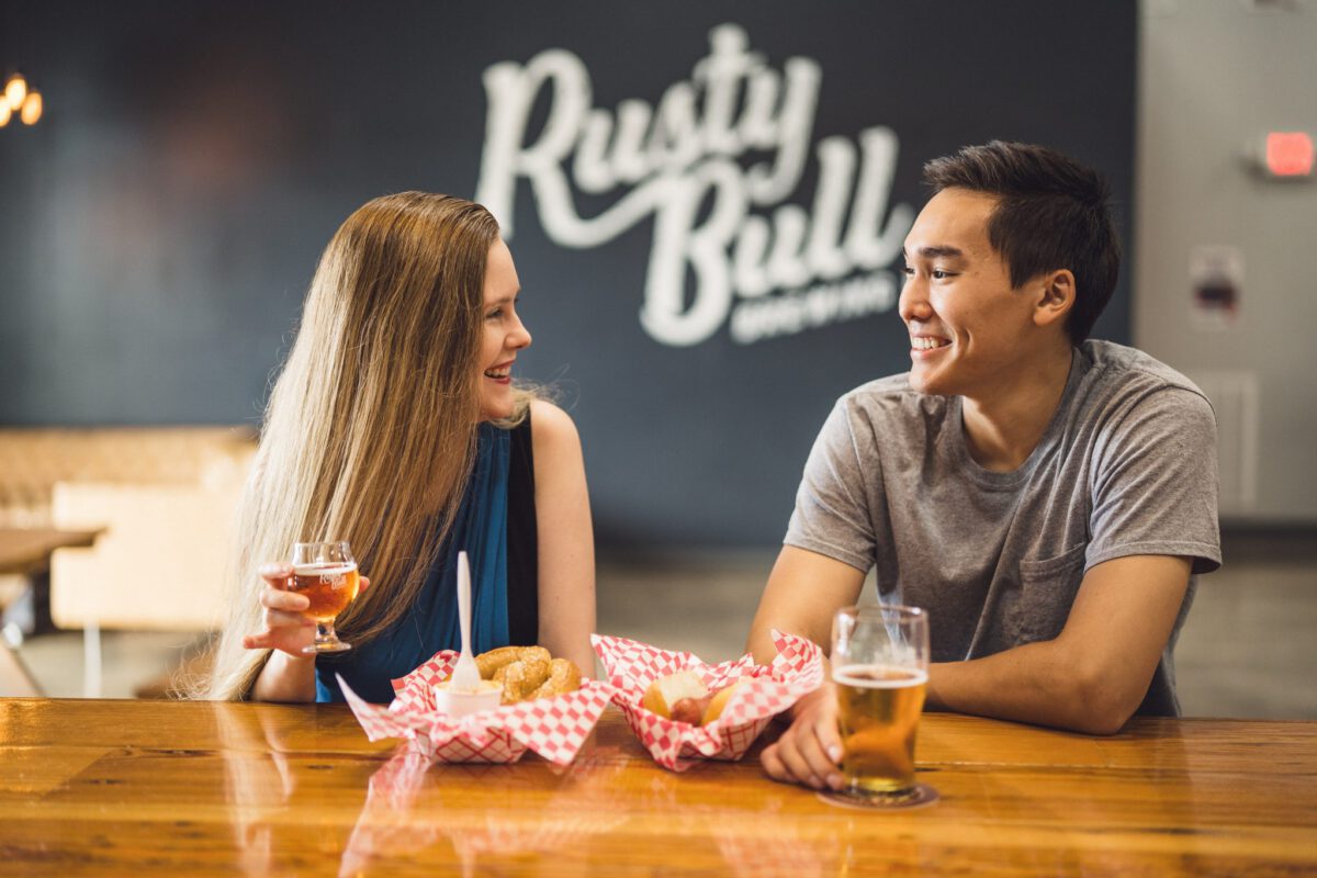 Now time to hit up Uber, Lyft, or your designated driver and head over to Rusty Bull Brewing Co. Like our other picks, this hop hub’s 14 taps regularly rotate to offer up plenty of variety, but that’s not the only thing that’ll appeal to our fickle friends: their food options update almost as regularly, thanks to the ever-changing food trucks. You can scope those out ahead of time on their events page. Dark beer lovers shouldn’t miss Tumbling Monk, a tasty porter with hints of chocolate, roasted coffee, and pistachio.